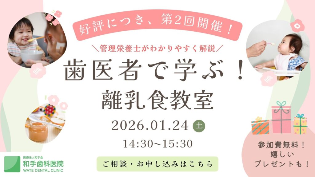 赤ちゃんの未来の健康な歯並びを守るために、歯科だからこそお伝えできる「お口の健康を守る食べ方」を、管理栄養士がわかりやすくお話しします。